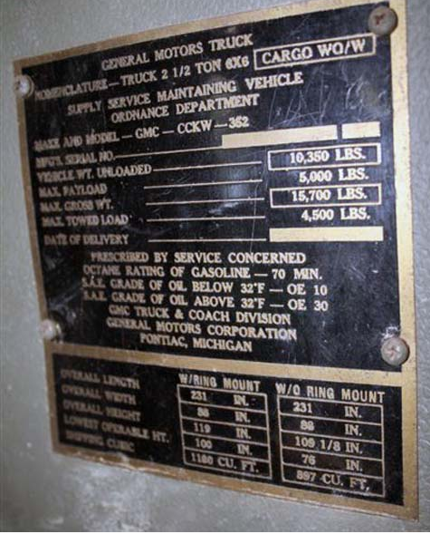 This brass data plate is passed as a wartime plate from olive-drab.com