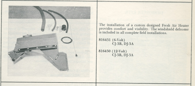 Of course Willys quickly followed the industry... small footprint heaters that were designed into the vehicle, not added as an afterthought. If you look at the heater that was installed on the CJ-5 it was a complete package: fresh air/recirculate, integral defroster, baffled and temp controlled. MILES ahead of what the CJ-3 offered. The CJ-5 was in production in 1954... and the heater included in that model was above and beyond the CJ-3 heater.