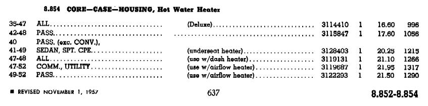retro-roco wrote:Maybe I wasn't clear. I didn't say anything about the heater being indicated for 1941. the listing specifically says 1942-48. Why would you expect it to be included in a master parts book that only lists through 1941??