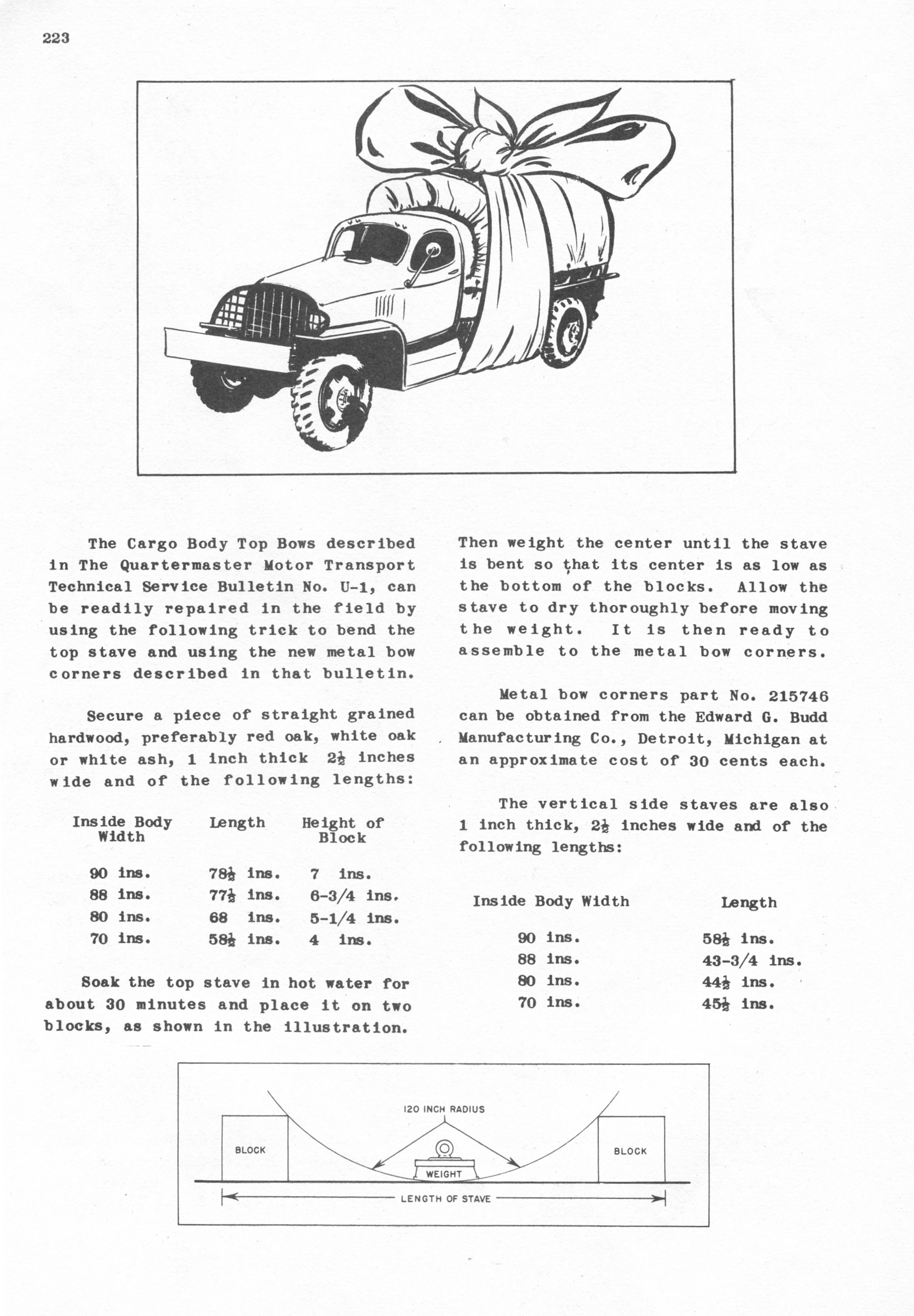 Cargo bed staves dimentions