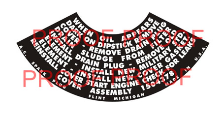 There actually appears to be an even EARLIER, early version. The very early CCKWs had dual oil filters, the decals on them are large squares. I do not have a very clear image of them, but they appear to be similar to later oil breather decal: A black line at the top and bottom, the AC logo the upper left and right corners, the copyright info along the bottom.