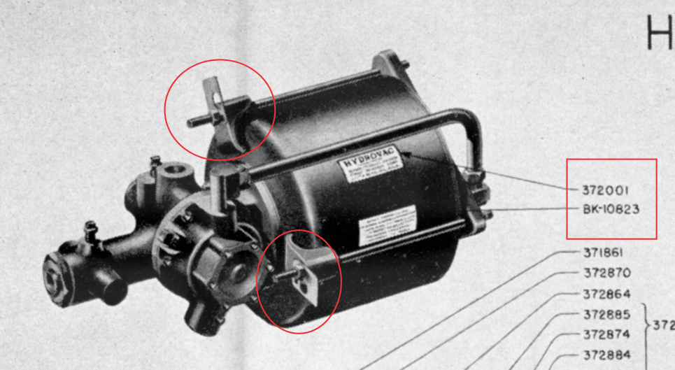 The decal part numbers are used in all the exploded views. That seems very odd. The image above is a single piston vac PN 372774 Model H25-25P-53. The other exploded view in the the Bendix book I have uses the EXACT SAME PART NUMBERS: BK-10823 and 372001 yet the the diagram is for a dual piston vac PN 373390 Model H35-10P-83